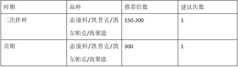 (2)推薦施肥套餐(根據(jù)用肥次數(shù)分類,結(jié)合目標(biāo)產(chǎn)量、地域、品種、地力等適當(dāng)調(diào)整)