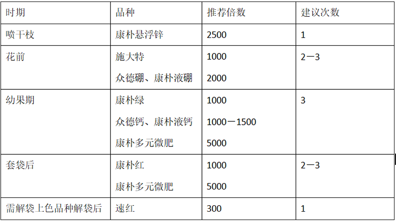 ?。?)推薦施肥套餐(根據(jù)目標產(chǎn)量、地域、品種、樹勢、樹齡、地力等適當調(diào)整)