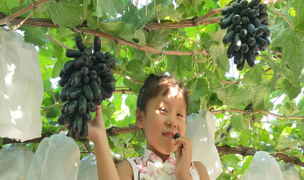 以巨峰為例,畝產(chǎn)6000斤左右,單穗重0.8斤為宜,畝套袋8000個。