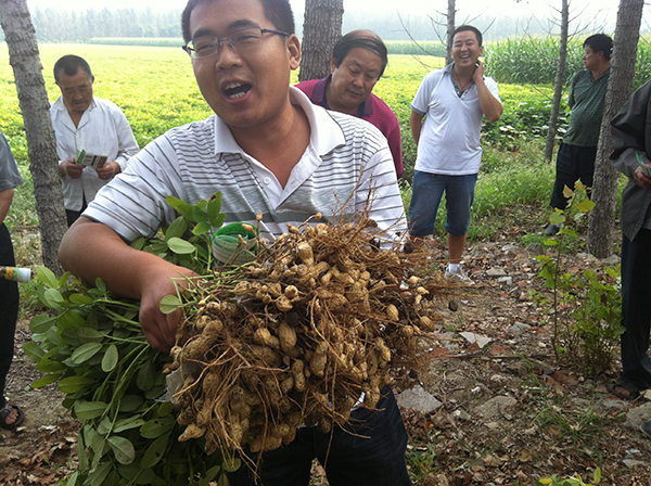 沂南縣辛集北左泉村農(nóng)民顧守武,去年用眾德(16-12-14)120斤/畝,生物有機(jī)肥80斤/畝,新朋友貴蓋美30斤,持力硼2袋,在翻地前一次性施入,到9月10號(hào)收獲期測(cè)產(chǎn)1173斤,與對(duì)照田產(chǎn)量1055斤相比,畝增產(chǎn)118斤,增產(chǎn)幅度11.2%。顧先生滿臉喜悅的說:“用眾德花生高產(chǎn)套餐方案效果非常好,歸功于眾德系列肥料原料考究,配方合理,營養(yǎng)全面,對(duì)于重茬、土壤酸化等問題障礙能夠得到有效解決,改良并活化土壤,特別是態(tài)康科、康樸系列葉面肥,能促進(jìn)花生根系和葉片生長,補(bǔ)充硼、鉬、鈣等中微肥,提高座果率、改善品質(zhì),提高產(chǎn)量,農(nóng)民最終獲得收益。